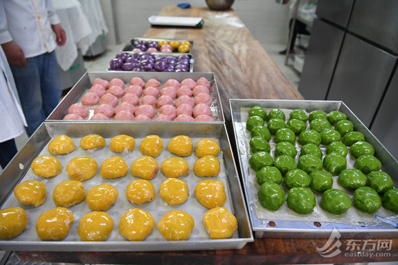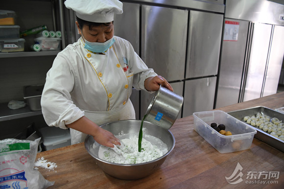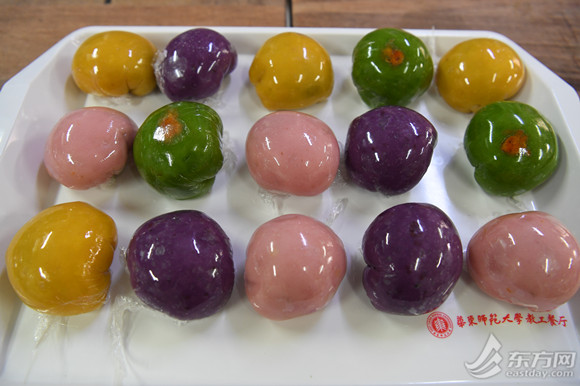 “去年因为疫情原因,很多同学都在家里,食堂虽然也做青团,但每天供应量只要两、三百个就够了。”河东食堂主任高兆骏告诉记者,今年食堂在口味上做出了更多创新,除了樱花团子,还有紫色的紫薯团子和黄色的南瓜团子,“这当中,最受欢迎的是蛋黄肉松青团和樱花团子。”