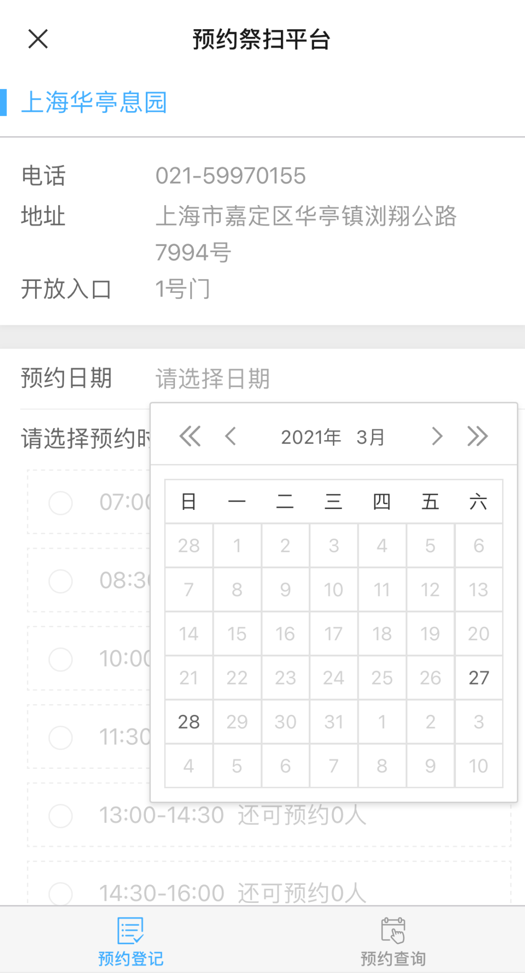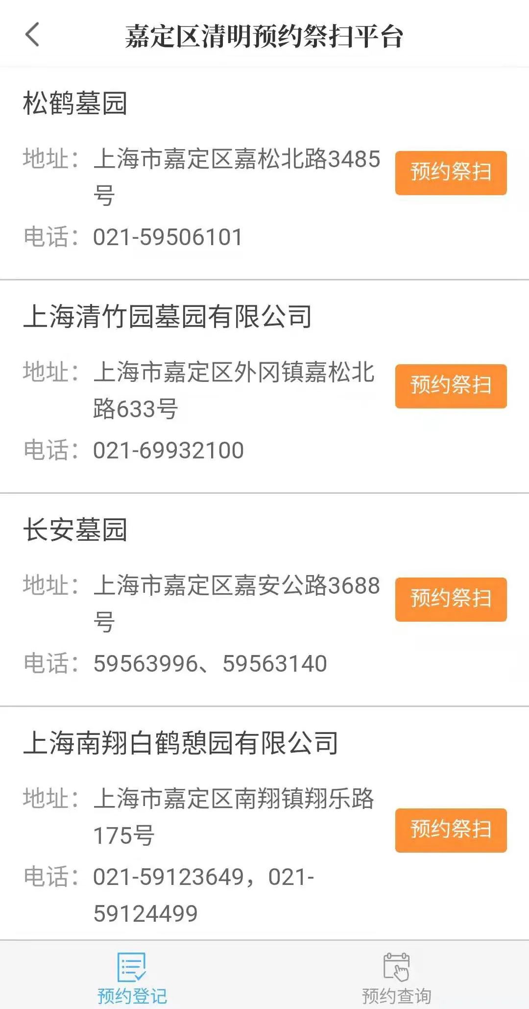 预约登记从3日19日8时起启动,市民可打开“上海嘉定”APP预约上述5个高峰日期间,所需祭扫时间段的预约祭扫服务(如所选时间段预约额已满,请选择其他时间)。