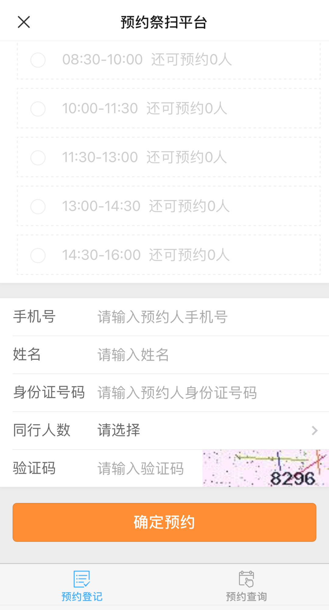 选择【预约日期】和【预约时段】,并填写个人信息后,点击【确认预约】