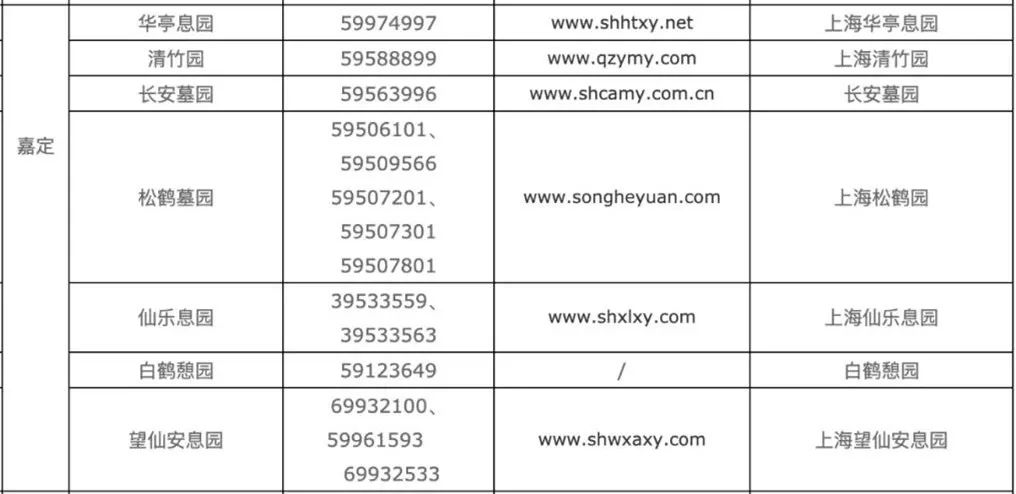 针对部分老年群体不会使用智能设备预约的情况,各公墓同步提供电话预约服务,详见↓