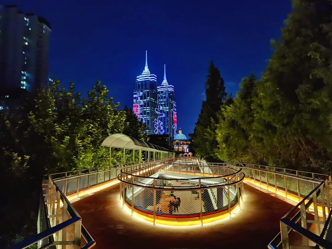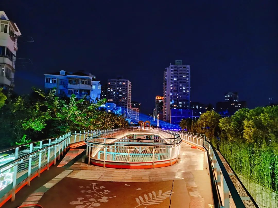 夜幕下的百禧公园,蜿蜒的线形步道在闪烁的灯光下显得格外美丽。开幕活动结束后,一场由曹杨社区群文团队带来的精彩文艺展演,为明日正式开放的百禧公园增添了一份“火热”。