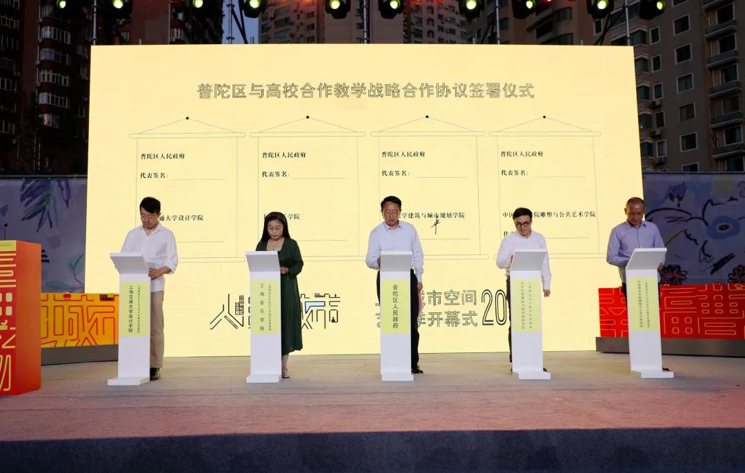 活动中,普陀区人民政府分别与同济大学建筑与城市规划学院、中国美术学院雕塑与公共艺术学院、上海交通大学设计学院、上海音乐学院等4家院校签订合作教学战略合作协议,以项目化深度合作,进一步优化资源配置,推动社区教学实践基地发展。这也意味着上海曹杨社区教学实践基地、上海曹杨社区公共空间艺术教学实践基地、上海曹杨社区美好生活设计教学实践基地、上海曹杨社区音乐艺术教学实践基地正式成立。