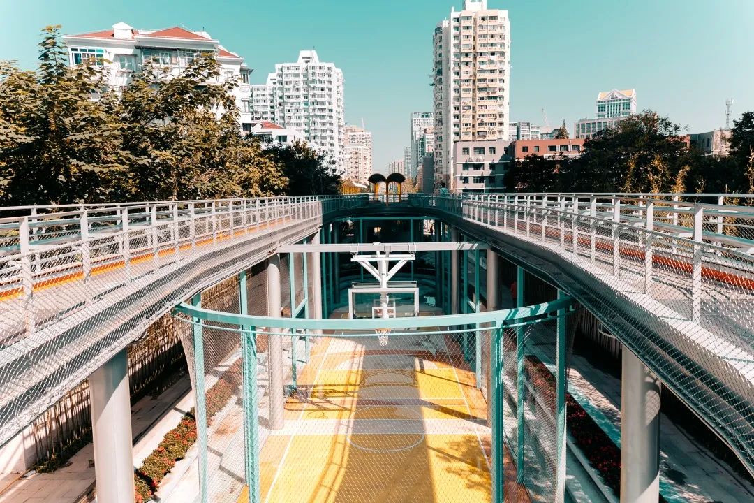 其中,顶层步道选用拱形的遮阳棚,从设计形态上,保留了居民们对曹杨铁路市场的集体记忆;半地下空间和开放的休闲活动廊,设置了篮球场、休闲驿站等活动场所,在空间打造上弥补了曹杨公园东部居民公共活动与休憩空间的缺失,通过各式展览、沙龙和装置,把更丰富的体验,更多元的生活方式传递给市民群众。