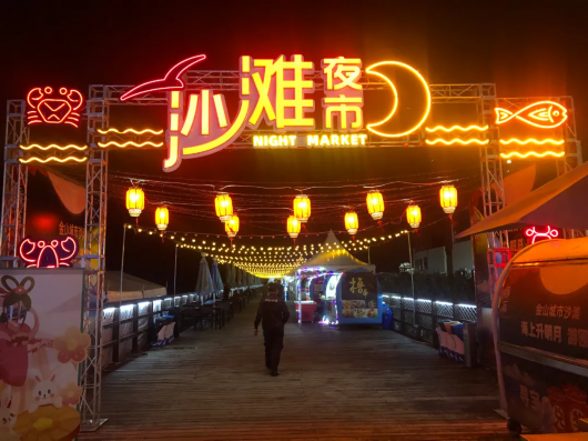内容:金山城市沙滩与台湾士林老街商圈繁荣促进会携手打造的士林夜市,游客们来金山城市沙滩就可以品尝到各式各样的台湾美食。
